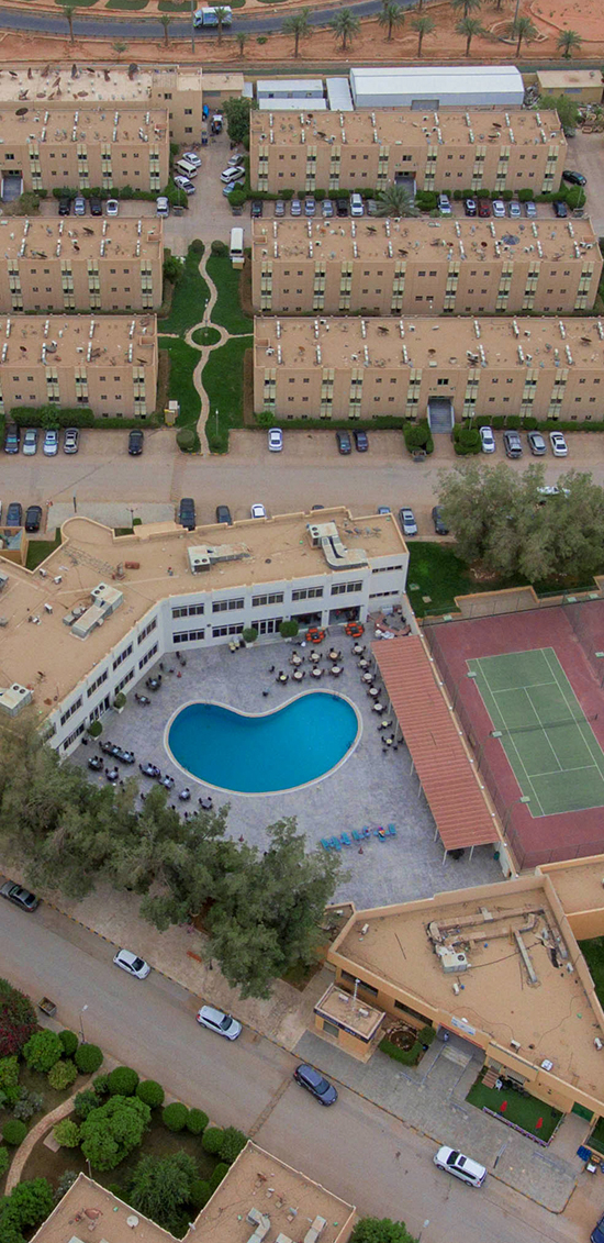 Residents have a variety of choices when it comes to sports and leisure, the Recreation Center conveniently located at the center of the compound houses and consist of two buildings, Recreation ‘A’ and ‘B’ with a multitude of sport and leisure facilities such as; indoor heated swimming pool, two outdoor swimming pool, large gym (one of the biggest gyms in Riyadh), aerobics room, multi-function hall (ideal for social functions), multi-function court (for soccer, volleyball and badminton), two tennis courts, kids playground, indoor squash and racquet court, video library (where you can rent latest movies either in VHS or DVD format), health club consisting Jacuzzi, steam bath, sauna bath, games room consisting of billiard tables, snooker tables, darts area, table football, air hockey table and table tennis.